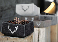 Der Objekthalter aus Filz, Mod. Isere ist ein handgefertigtes Stück, das die gemütliche und authentische Atmosphäre der Berge direkt in Ihr Zuhause bringt. Dieser mit Sorgfalt und Liebe zum Detail gefertigte Halter vereint die Funktionalität von Wollfilz mit der Schönheit stilisierter Hirschstickereien.