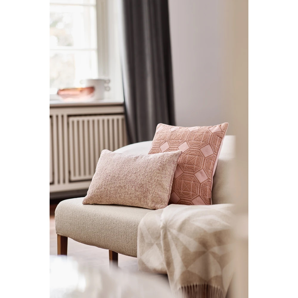 Geometrie in Perfektion: Das Kissen Palladium im Format 45×45 cm vereint architektonische Klarheit mit textiler Raffinesse. Das geometrische Muster entsteht durch fein erhobene Fäden, die fast wie eine Ton-in-Ton-Stickerei wirken. In Kombination mit dem subtilen Matt-Glanz-Effekt der verwendeten Garne ergibt sich ein elegantes Spiel aus Struktur, Tiefe und Lichtreflexion.